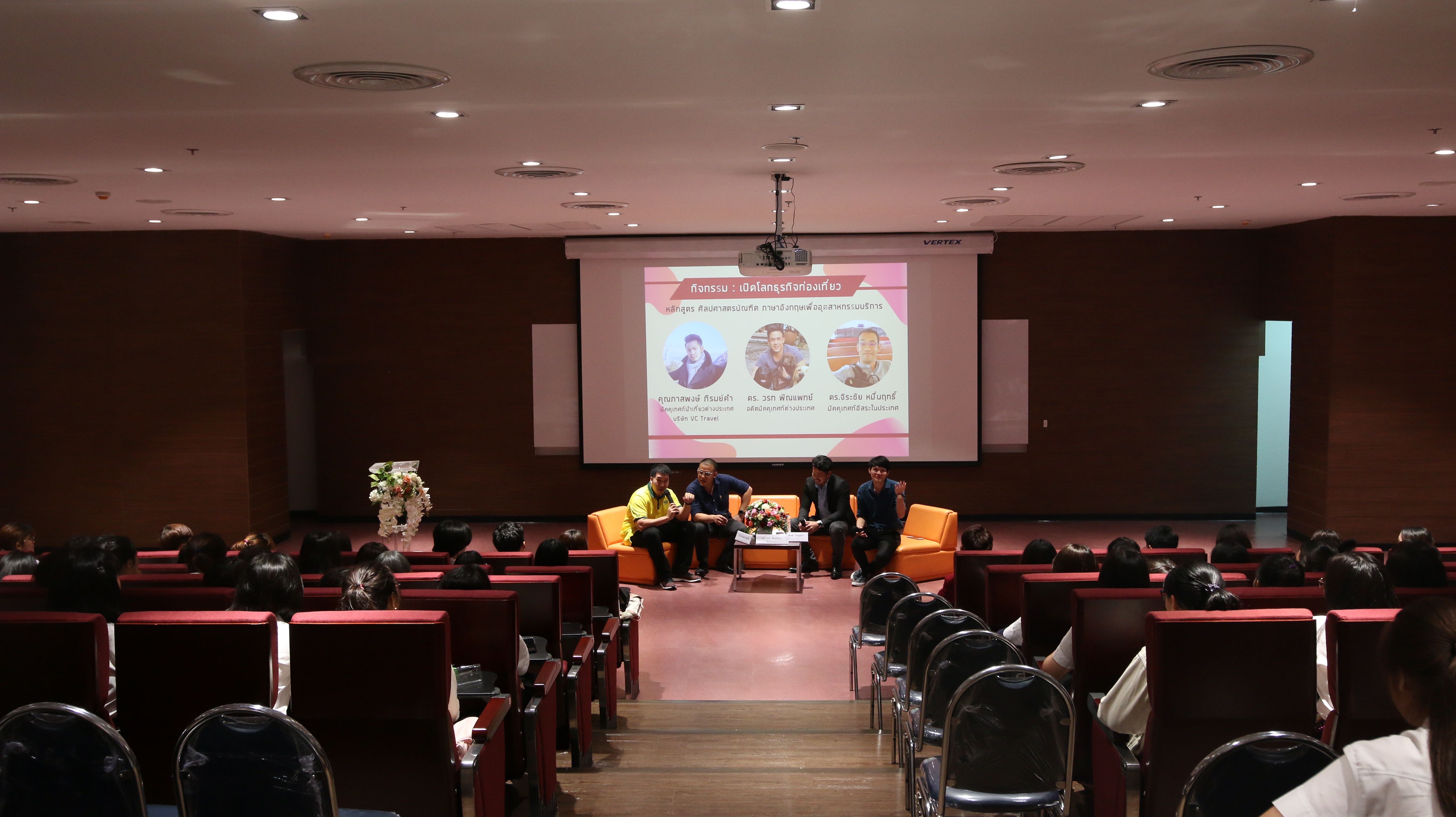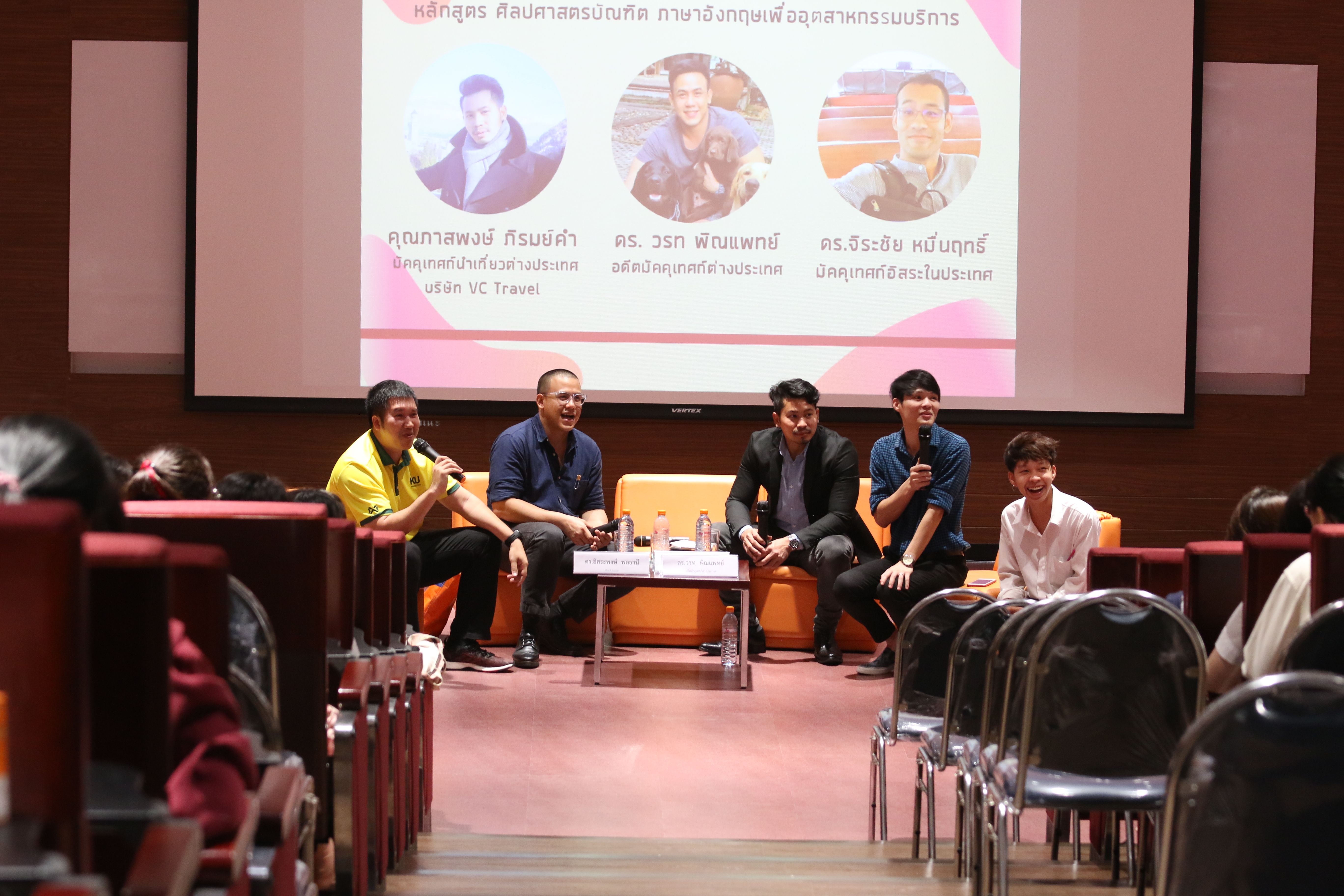 หลักสูตรศิลปศาสตรบัณฑิต สาขาวิชาภาษาอังกฤษเพื่ออุตสาหกรรมบริการ เป็นหลักสูตรที่เน้นการบูรณาการศาสตร์ด้านภาษาอังกฤษ กับศาสตร์ด้านการบริการ อันประกอบด้วย อุตสาหกรรมท่องเที่ยว อุตสาหกรรมโรงแรม และอุตสาหกรรมการบิน อย่างไรก็ตาม ผู้เรียนจำนวนมาก ยังมีความรู้พื้นฐานเกี่ยวกับการประกอบอาชีพในงานด้านอุตสาหกรรมบริการไม่เพียงพอที่จะตัดสินใจว่าจะประกอบอาชีพใดในอนาคต เพื่อเป็นการให้ความรู้เกี่ยวกับการทำงาน ตำแหน่งงาน และสังคมการปฏิบัติงานจริงในธุรกิจท่องเที่ยว โรงแรม และสายการบิน หลักสูตรศิลปศาสตรบัณฑิต สาขาวิชาภาษาอังกฤษเพื่ออุตสาหกรรมบริการ จึงมุ่งหวังจัดโครงการเปิดโลกธุรกิจบริการ โดยเชิญวิทยากรที่เป็นผู้มีความรู้ ความสามารถและประสบการณ์ในการทำงานในธุรกิจบริการ มาให้ความรู้ พูดคุย แลกเปลี่ยนประสบการณ์กับนิสิตในหลักสูตร เพื่อเป็นการเปิดโลกทัศน์ให้นิสิตได้รู้จักงานในธุรกิจท่องเที่ยวมากขึ้น รวมถึงสามารถค้นพบว่าตนมีความสนใจในด้านใดเป็นพิเศษอีกด้วย