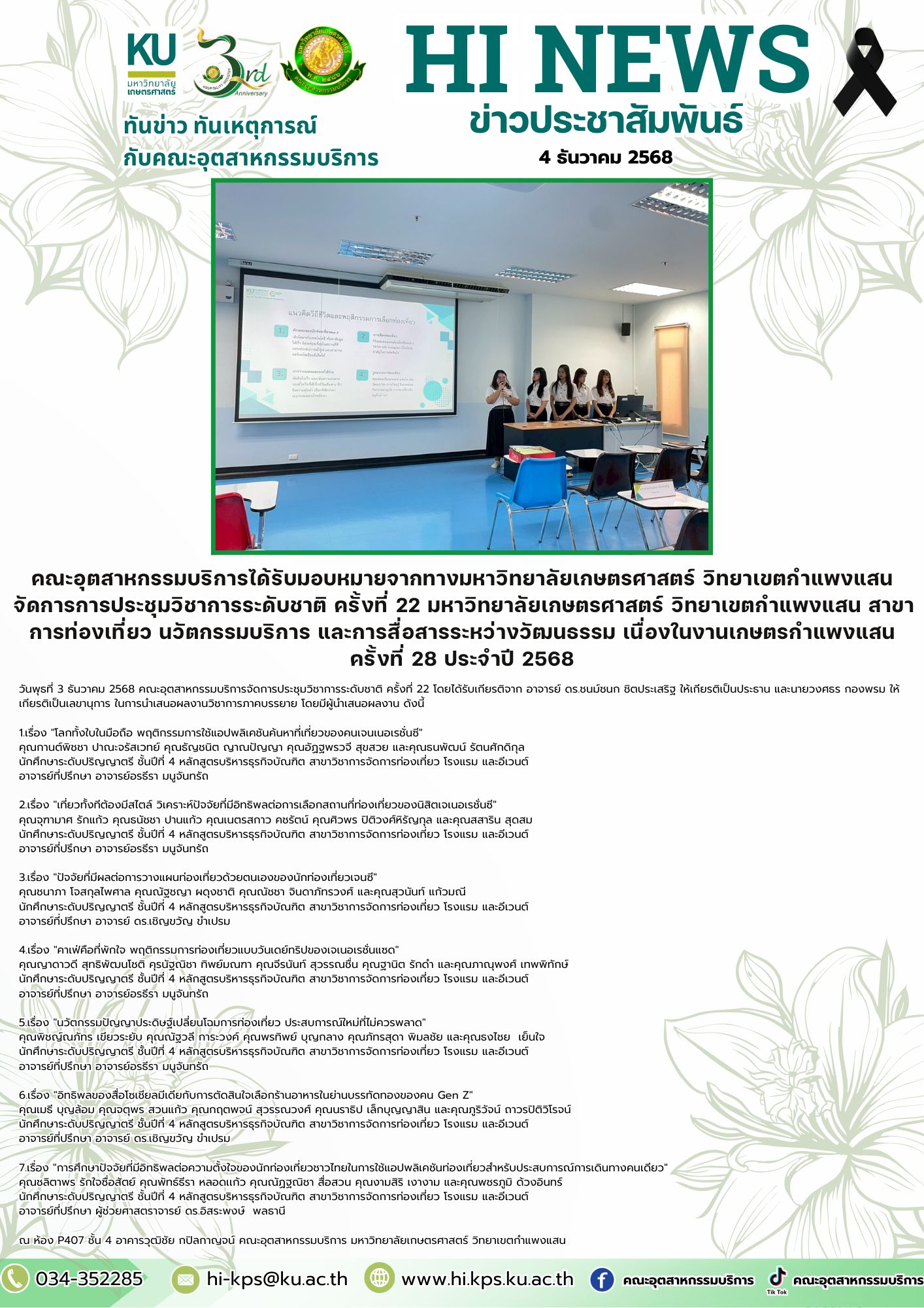 Copyright © 2020 Faculty of Hospitality Industry, Kasetsart University, Kamphaeng Saen Campus.