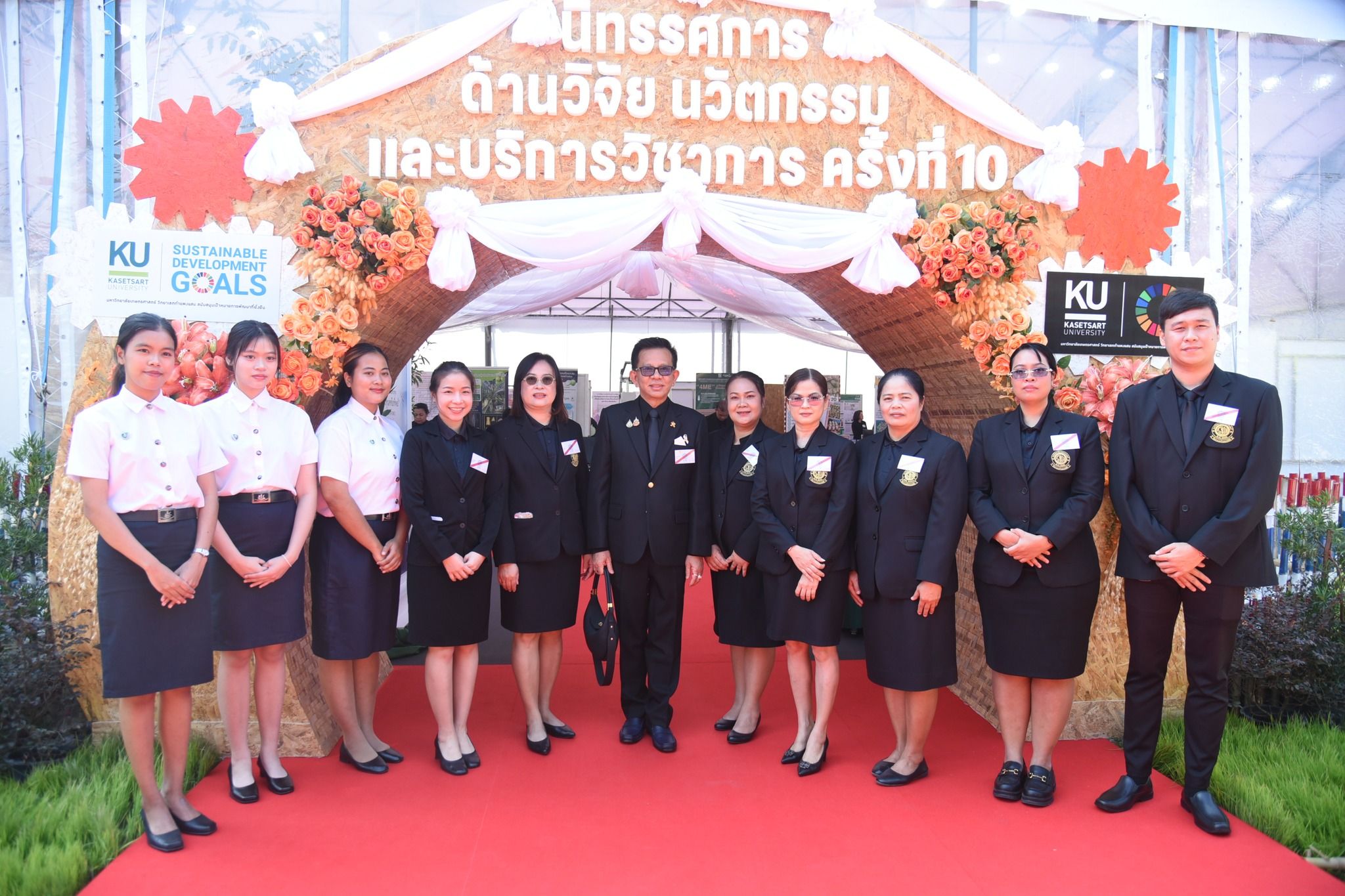 วันจันทร์ที่ 1 ธันวาคม 2568 เวลา 08.30 น. รองศาสตราจารย์ ดร.อนามัย ดำเนตร ปฐมคณบดีและผู้ก่อตั้งคณะอุตสาหกรรมบริการ ให้เกียรติถ่ายภาพร่วมกับ 1.นางสุณี โสดา เจ้าหน้าที่บริหารงานทั่วไปชำนาญการ หัวหน้างานบริหารการวิจัย 2.นางอัญชรี แสงพฤกษ์ หัวหน้างานบริการวิชาการ สังกัดงานบริหารการวิจัย 3.นางสาวอัญชิสา สอนพา เจ้าหน้าที่บริหารงานทั่วไปปฏิบัติการ สังกัดงานบริหารการวิจัย 4.นางสาวณัชชา อ่อนศิริ นักวิชาการเงินและบัญชีปฏิบัติการ สังกัดงานบริหารการวิจัย 5.นางซ่อนกลิ่น ปานดียิ่ง พนักงานธุรการ ส.3 สังกัดงานบริหารการวิจัย 6.นางสาวซากีนา รุ่งโรจน์ เจ้าหน้าที่บริหารงานทั่วไปปฏิบัติการ สังกัดงานบริหารการวิจัย ในพิธีเปิด งานเกษตรกำแพงแสน ครั้งที่ 28 ณ เต๊นท์นิทรรศการ ด้านวิจัย นวัตกรรม และบริการวิชาการ มหาวิทยาลัยเกษตรศาสตร์ วิทยาเขตกำแพงแสน
