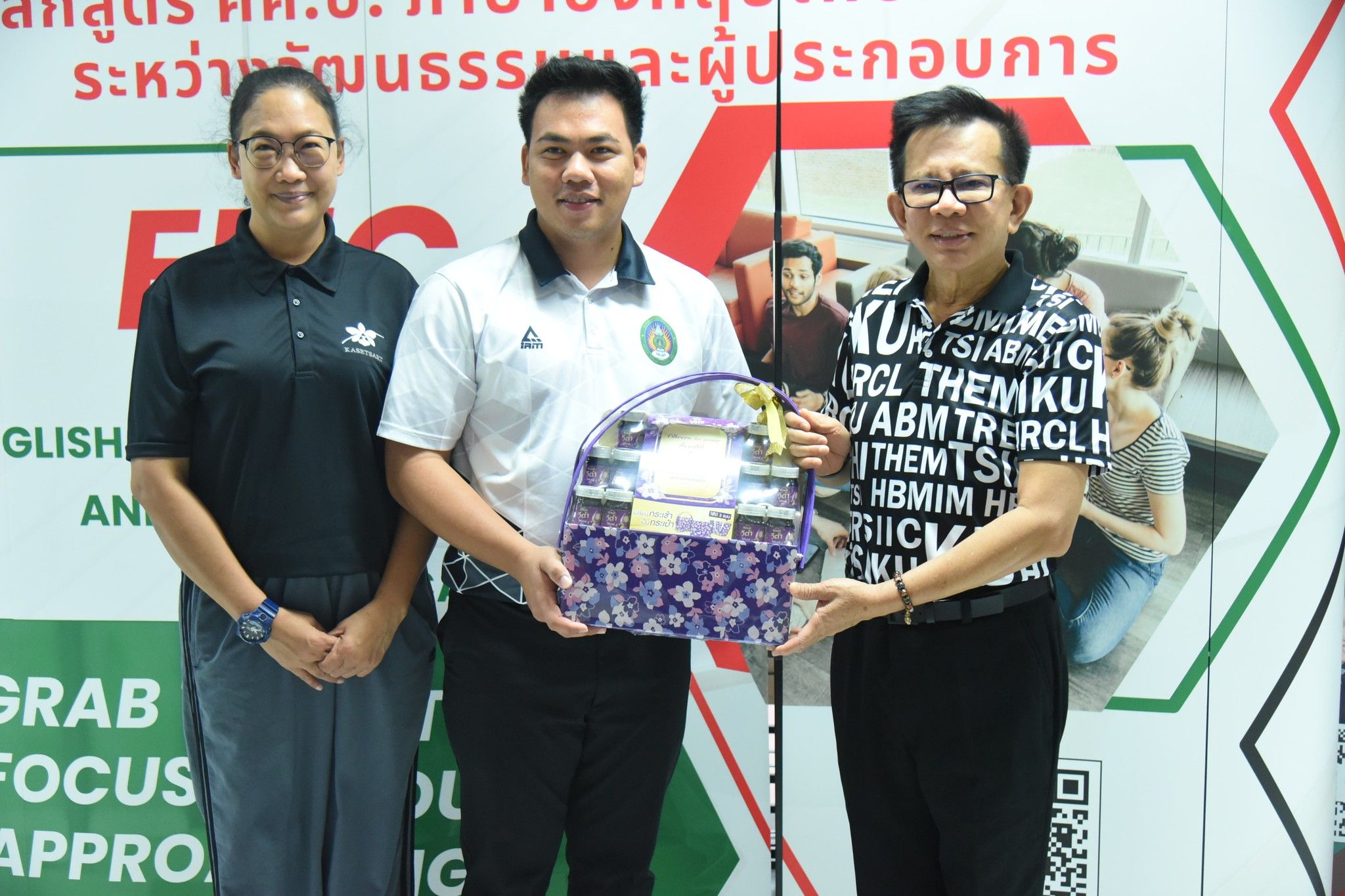 ณ หน้าห้องประชุมวัฒนา พึ่งชัย ชั้น 2 อาคารวุฒิชัย กปิลกาญจน์ คณะอุตสาหกรรมบริการ มหาวิทยาลัยเกษตรศาสตร์ วิทยาเขตกำแพงแสน