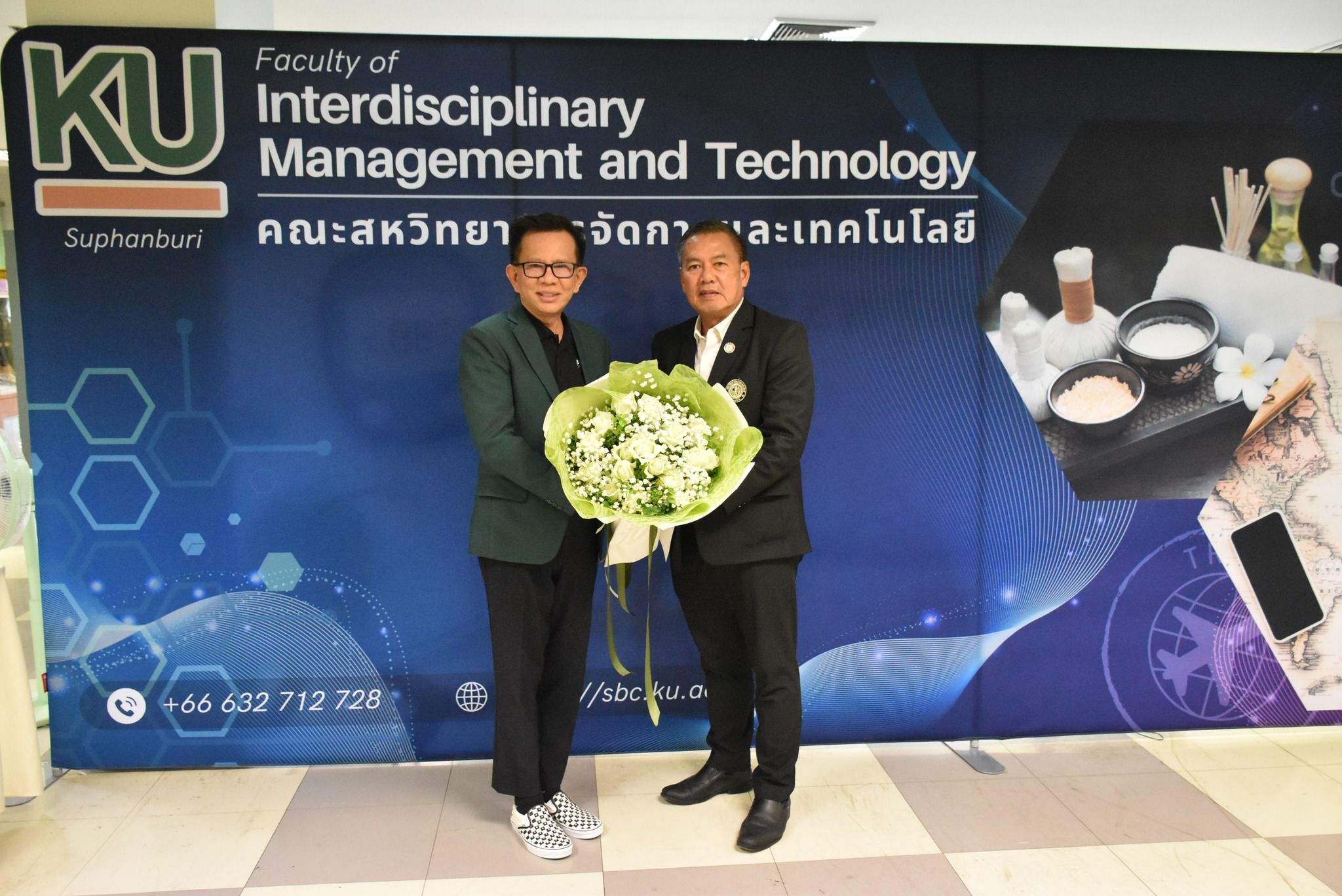 เมื่อวันจันทร์ที่ 2 มีนาคม พ.ศ. 2569 เวลา 16.30 น. ณ คณะสหวิทยาการจัดการและเทคโนโลยี มหาวิทยาลัยเกษตรศาสตร์ จังหวัดสุพรรณบุรี รองศาสตราจารย์ ดร.อนามัย ดำเนตร ปฐมคณบดีและผู้ก่อตั้งคณะอุตสาหกรรมบริการ พร้อมด้วยผู้บริหาร อาจารย์ และบุคลากร ร่วมแสดงความยินดีกับรองศาสตราจารย์ ดร.วินัย พูลศรี ในโอกาสเข้ารับดำรงตำแหน่ง คณบดีคณะสหวิทยาการจัดการและเทคโนโลยี