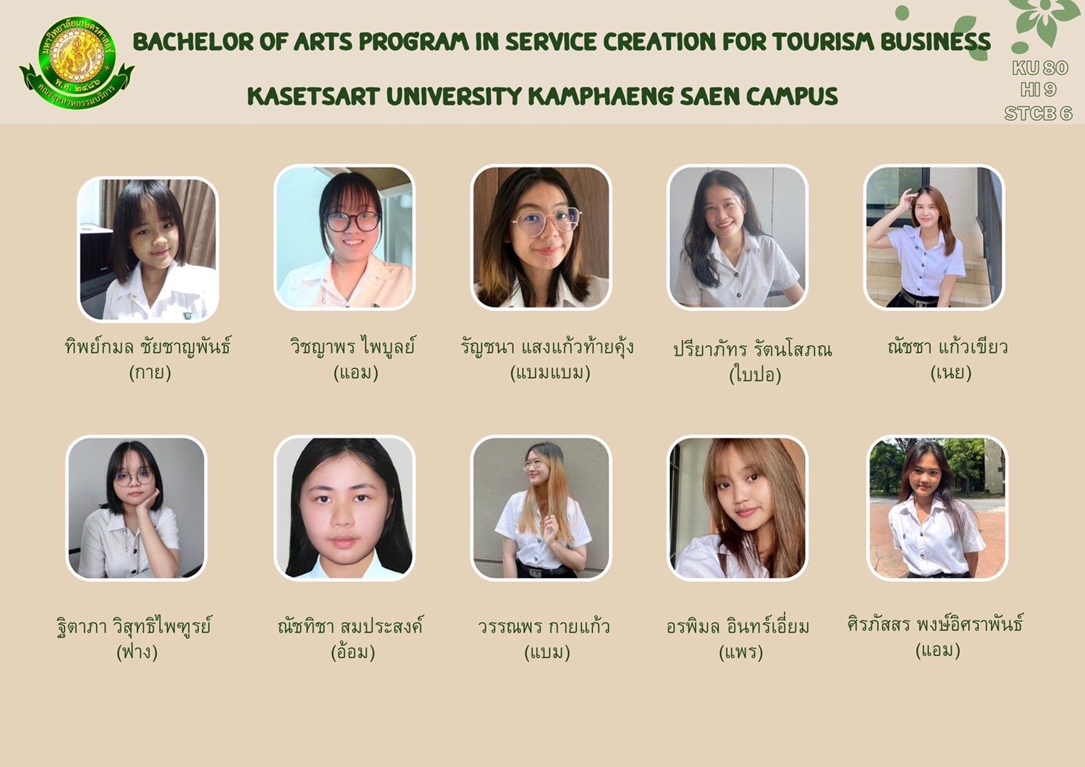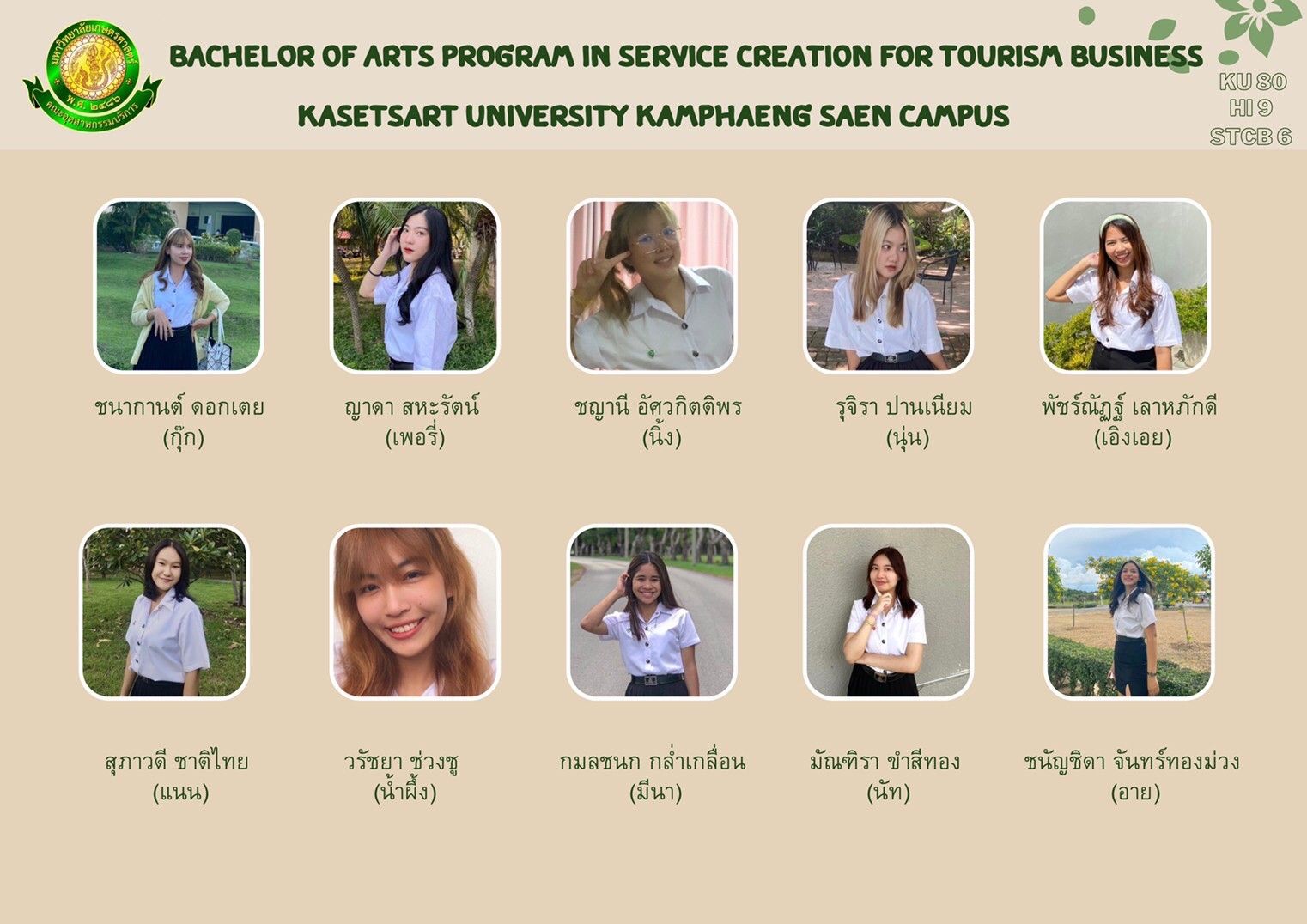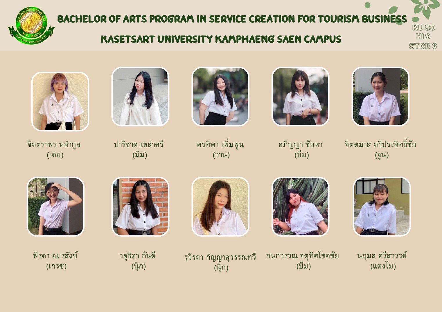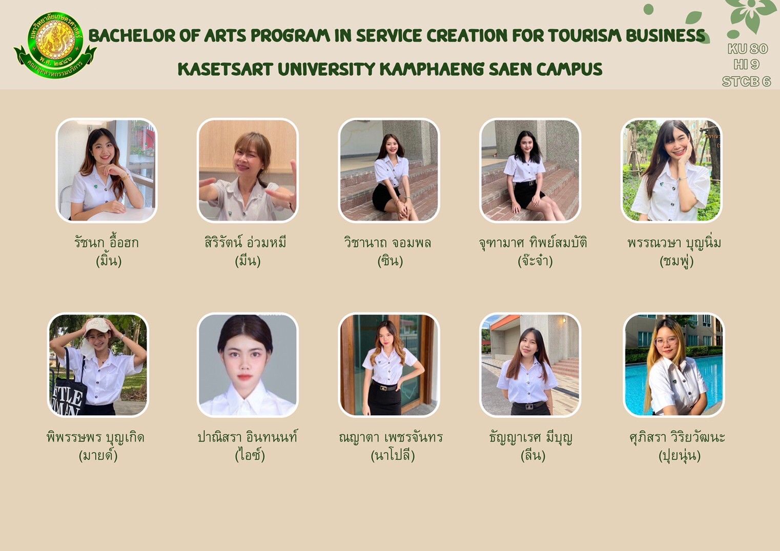 ทำเนียบรุ่น สาขาวิชาการสร้างสรรค์การบริการเพื่อธุรกิจการท่องเที่ยว รุ่น 6 HI 9 KU 80