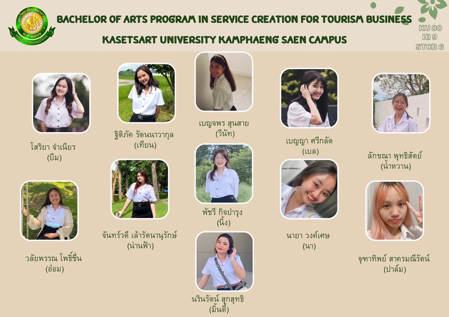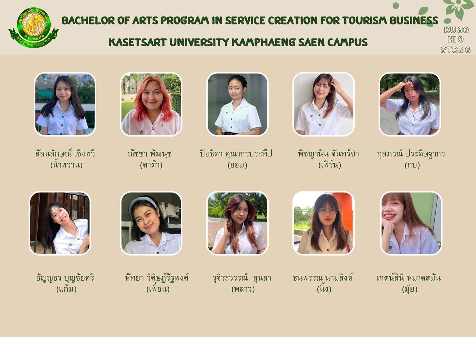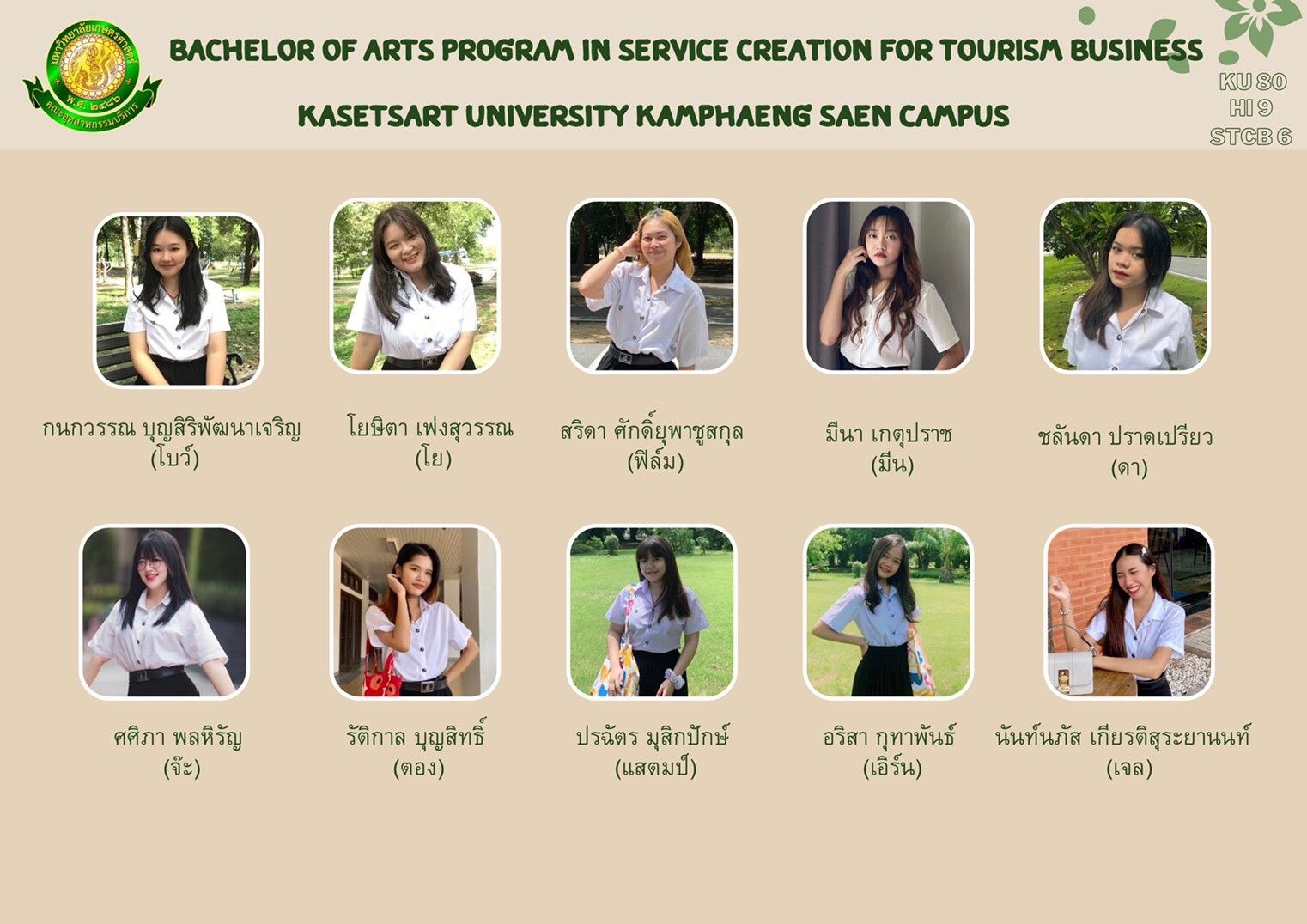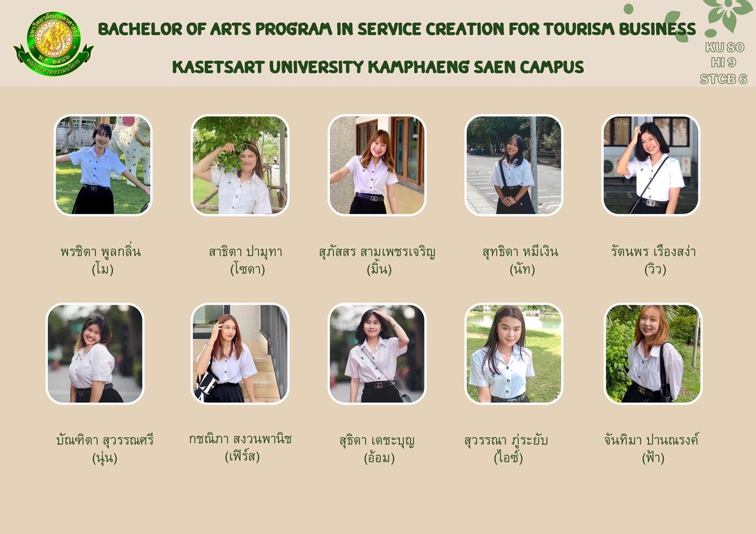 ทำเนียบรุ่น สาขาวิชาการสร้างสรรค์การบริการเพื่อธุรกิจการท่องเที่ยว รุ่น 6 HI 9 KU 80