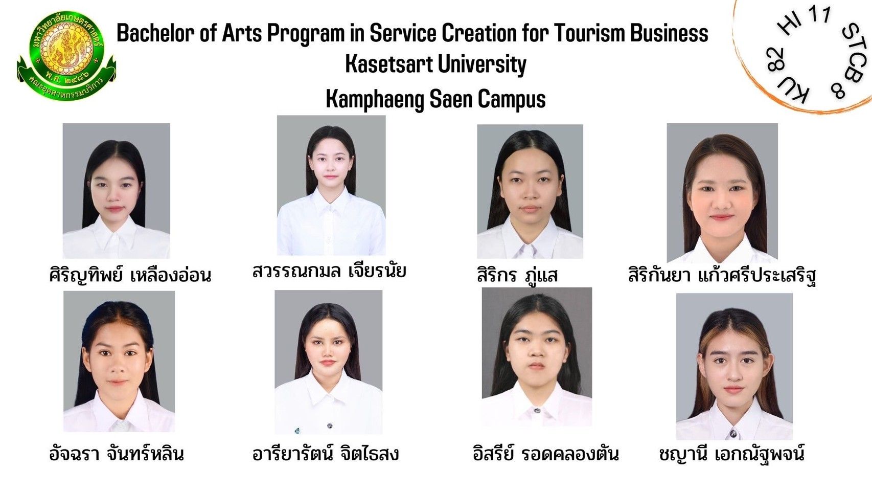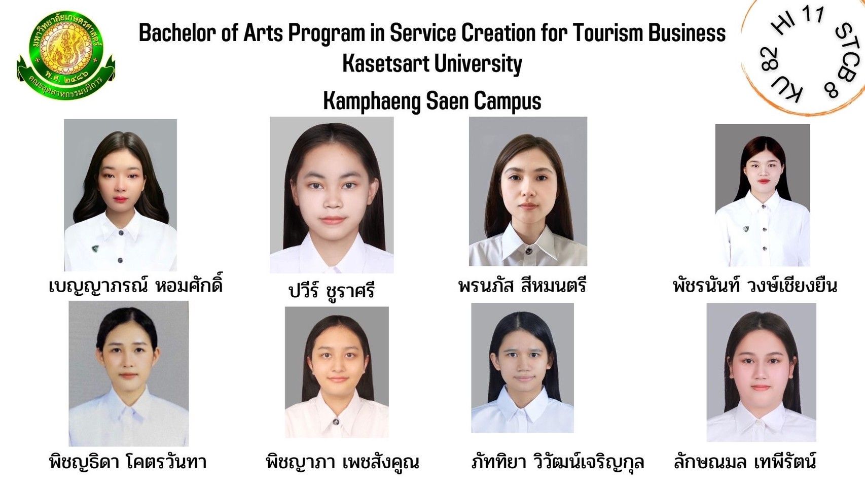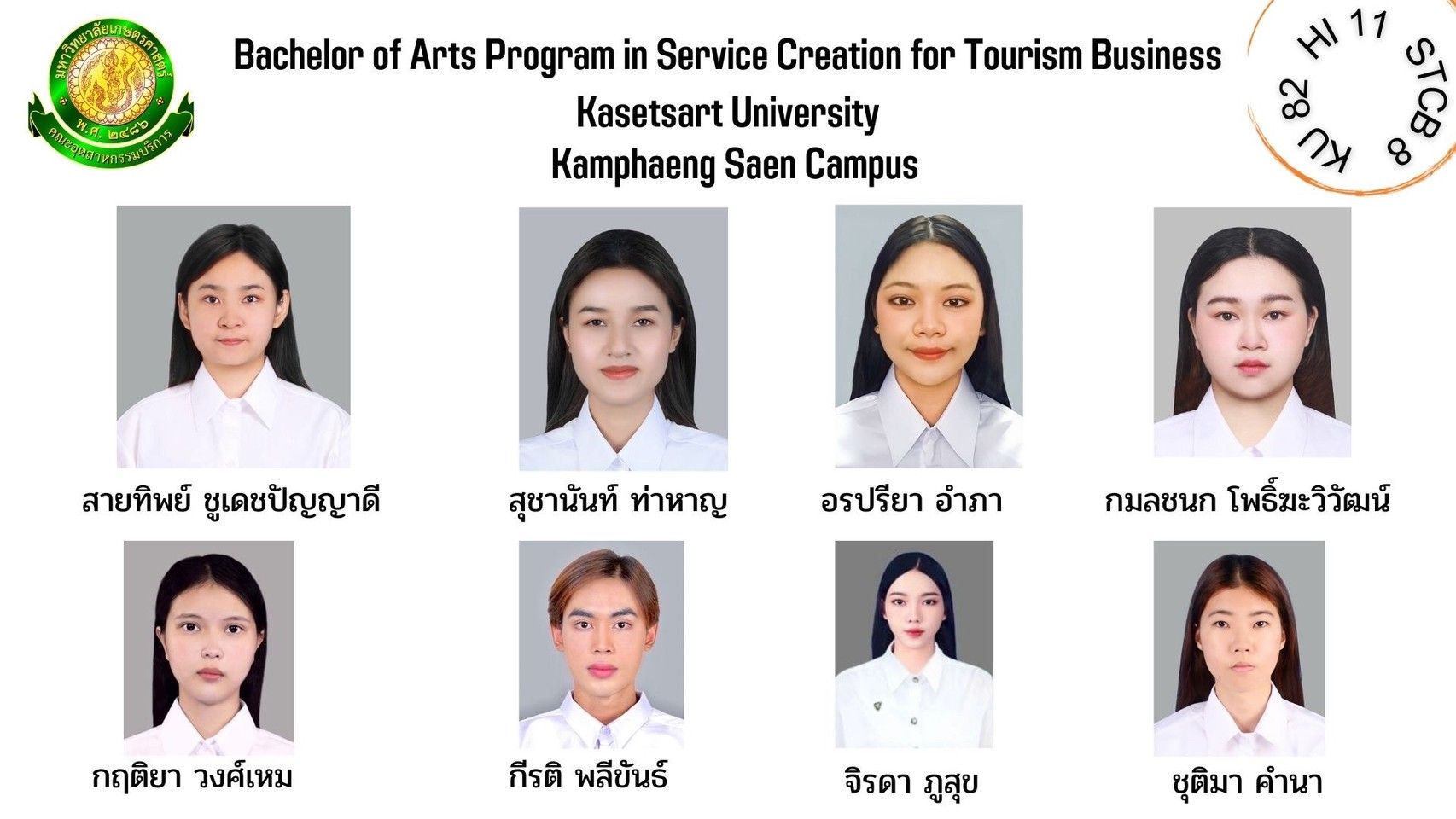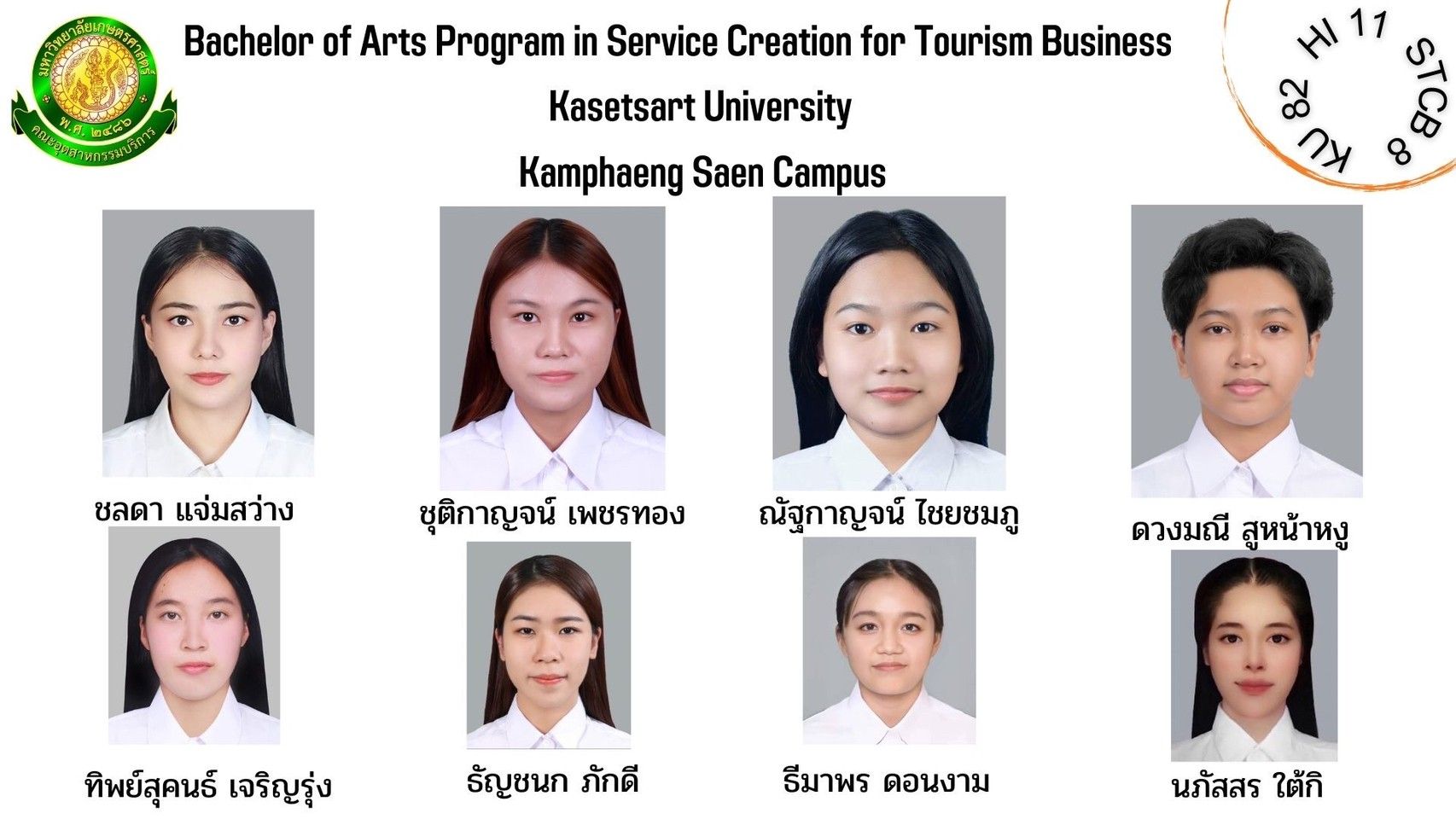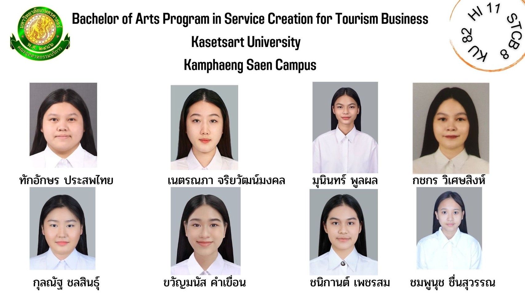 ทำเนียบรุ่น สาขาวิชาการสร้างสรรค์การบริการเพื่อธุรกิจการท่องเที่ยว รุ่นที่ 8 HI 11 KU 82