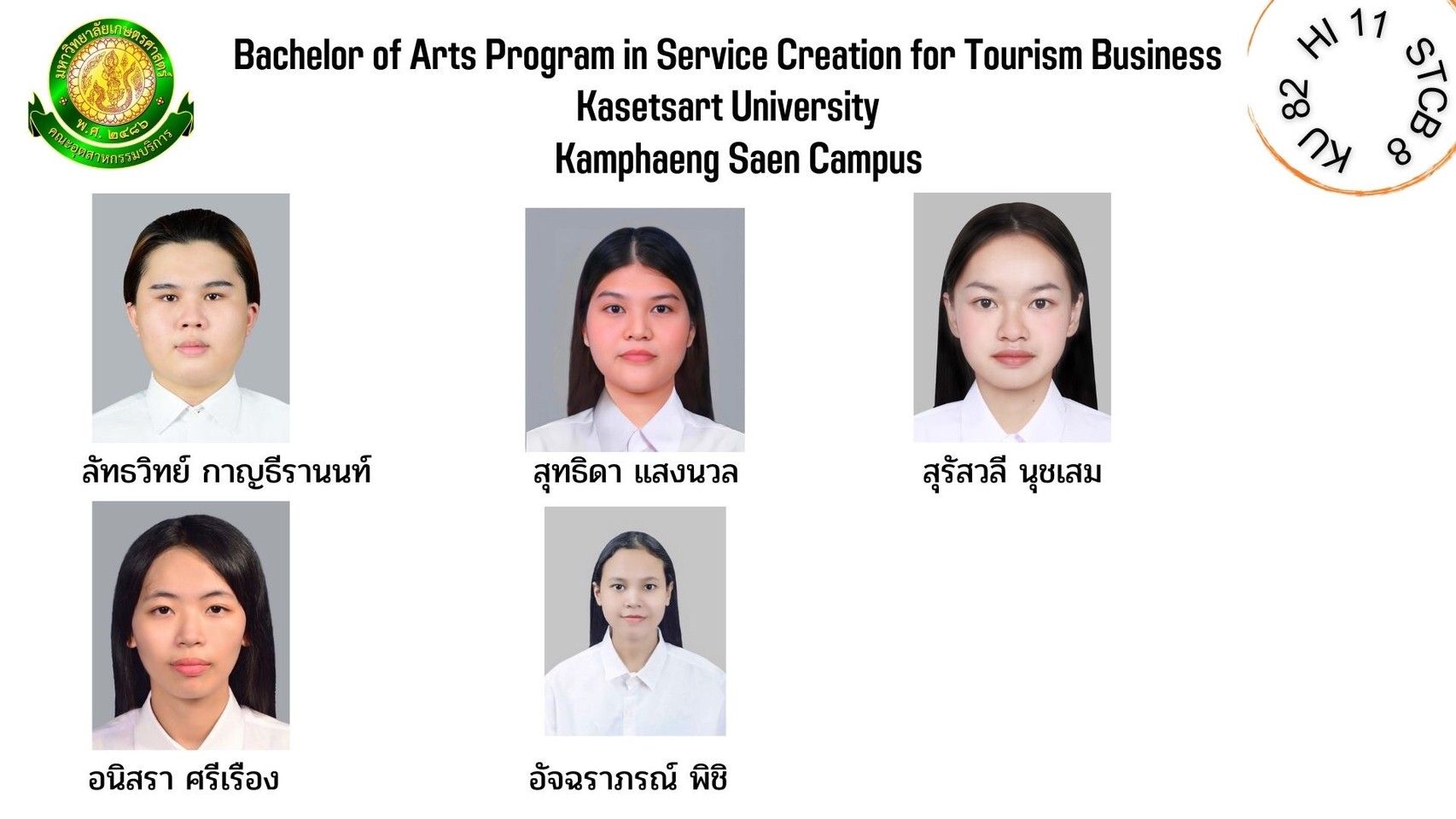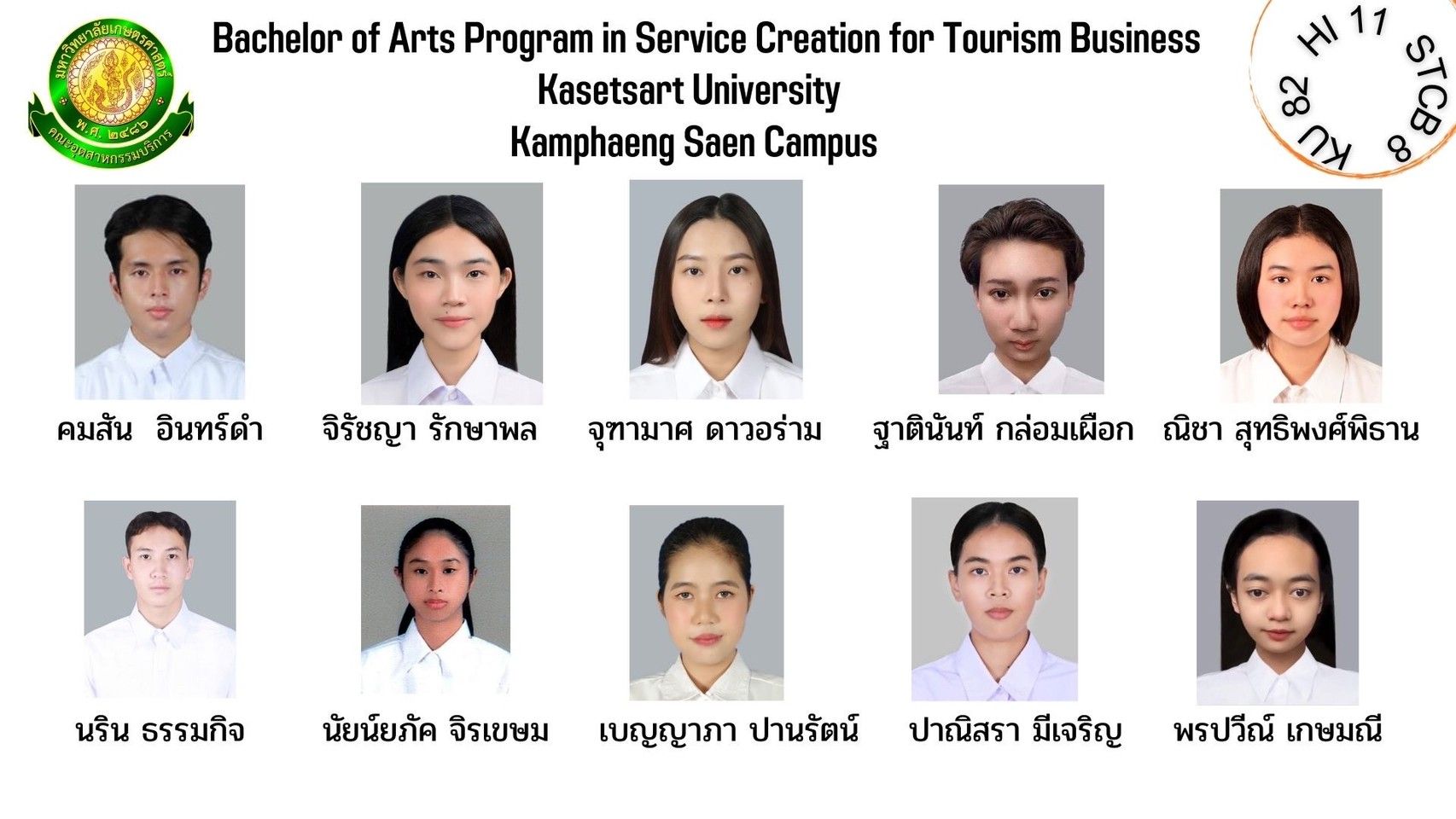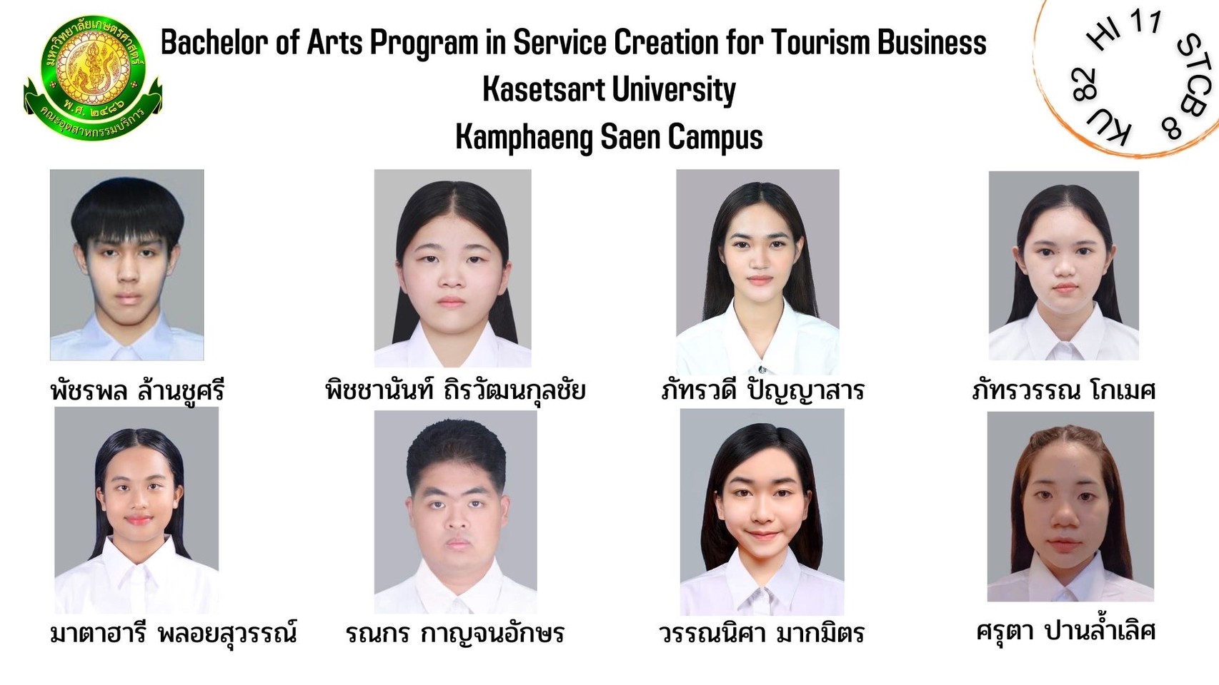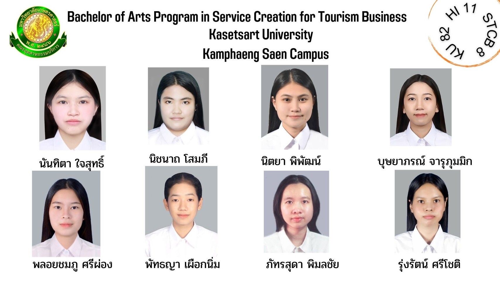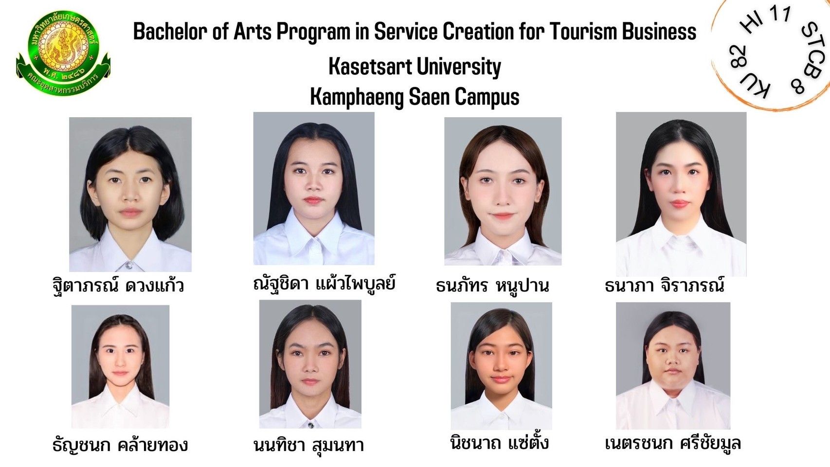 ทำเนียบรุ่น สาขาวิชาการสร้างสรรค์การบริการเพื่อธุรกิจการท่องเที่ยว รุ่นที่ 8 HI 11 KU 82