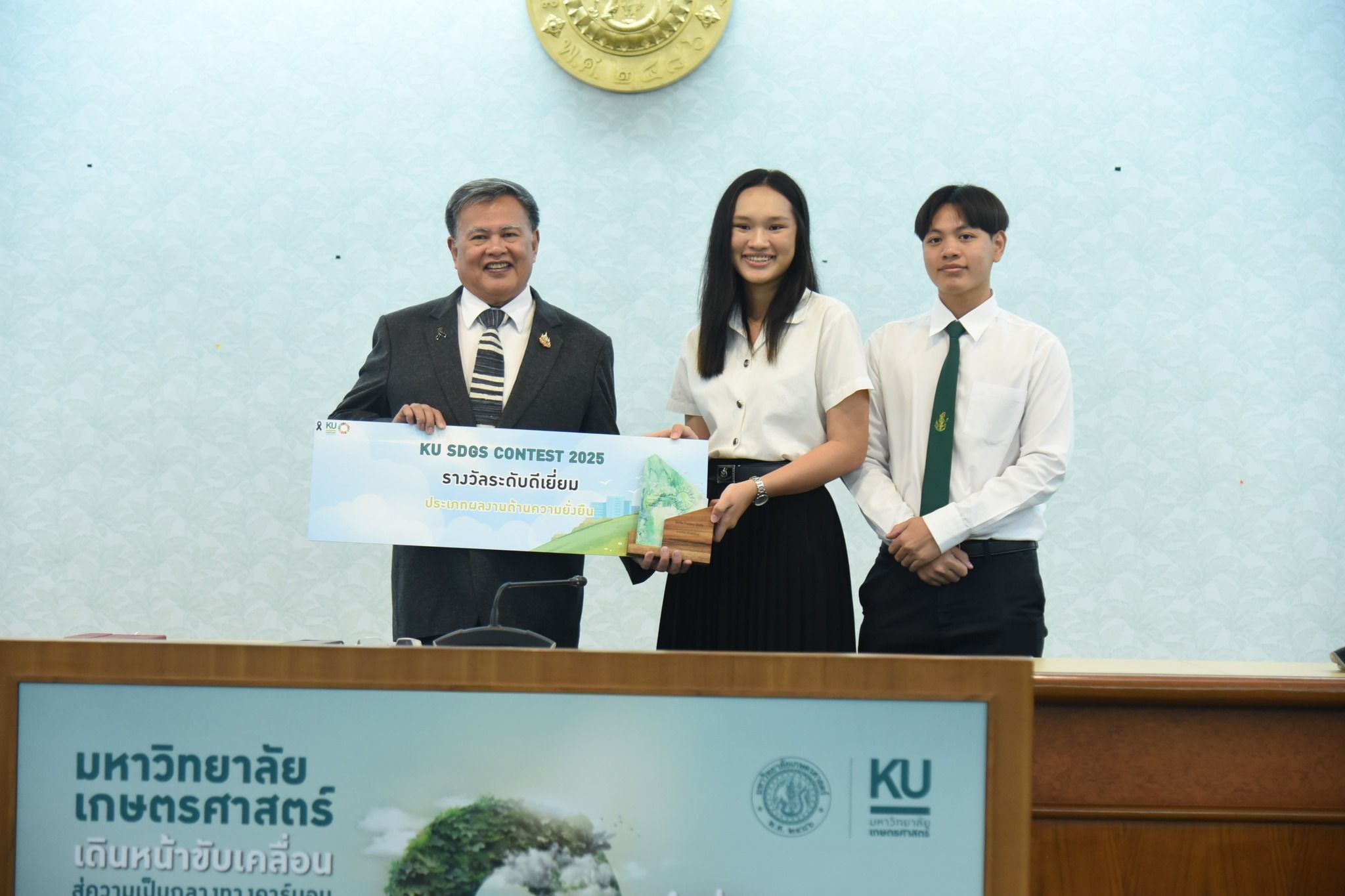 เมื่อวันจันทร์ที่ 9 กุมภาพันธ์ พ.ศ. 2569 เวลา 13.30 น. ณ ห้องกำพล อดุลวิทย์ อาคารสารนิเทศ 50 ปี มหาวิทยาลัยเกษตรศาสตร์ บางเขน ได้มีการจัดพิธีมอบรางวัล โครงการประกวดผลงานด้านความยั่งยืน (KU SDGs Contest 2025) ประจำปี 2568 ในหัวข้อ "Healthy & Low-carbon KU" โดยได้รับเกียรติจาก ดร.ดำรงค์ ศรีพระราม รักษาการแทนอธิการบดีมหาวิทยาลัยเกษตรศาสตร์ เป็นประธานในพิธีมอบโล่รางวัลเพื่อเชิดชูเกียรติแก่บุคลากรและนิสิตที่มีผลงานโดดเด่นด้านการพัฒนาอย่างยั่งยืน